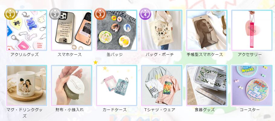 イラストからのグッズ作成に活用されることが多く、『おすすめのオリジナルグッズ作成サイト』として、口コミで紹介されていることも多いようです。