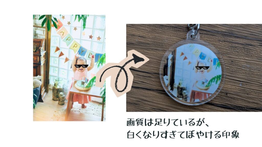 特に明るめの写真を利用してグッズを作ったところ、かなり白飛びしてしまっている印象を受けました。