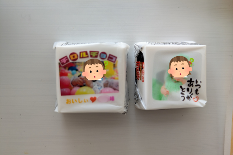 わが子の写真の入ったお菓子は、インパクトがあり喜んでもらえること間違えなし★