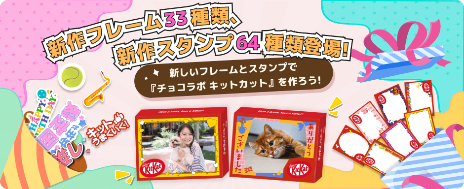 フレームだけでも80種類以上があり、そこにスタンプやテキストを組み合わせるとデザインの可能性は無限大です。