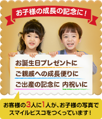内祝いや、バレンタイン・父の日などに、子どもの写真入りお菓子が人気です。