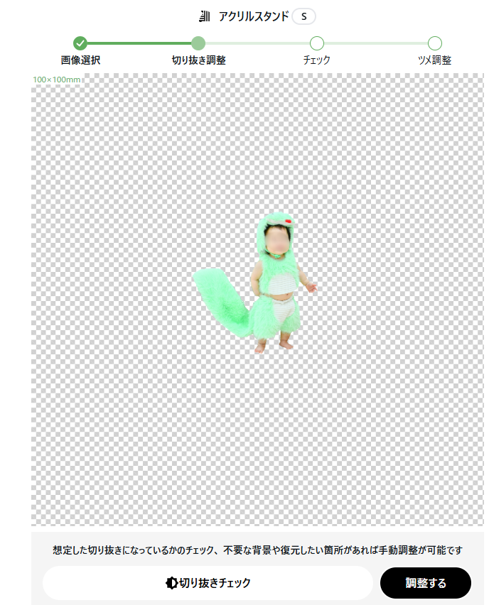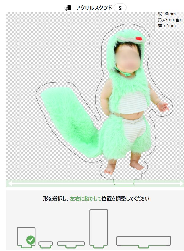 切り抜きが終了したら、アクスタになった時の仕上がりのイメージを確認します。