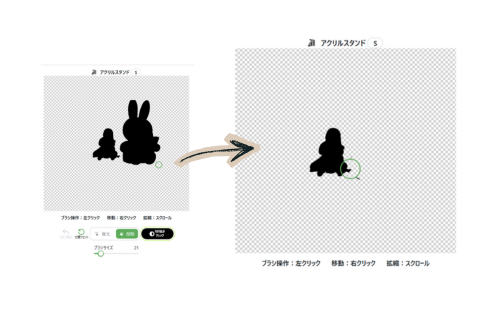 今回は子どもだけをアクスタにしたいので、ブラシを利用してキャラクターを削除します。