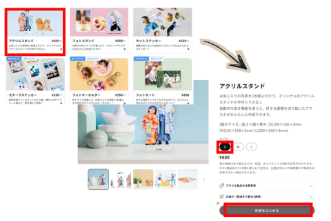 ちなみに私は、ACRYの作成は難しくて注文までできずに終わってしまいました。。涙