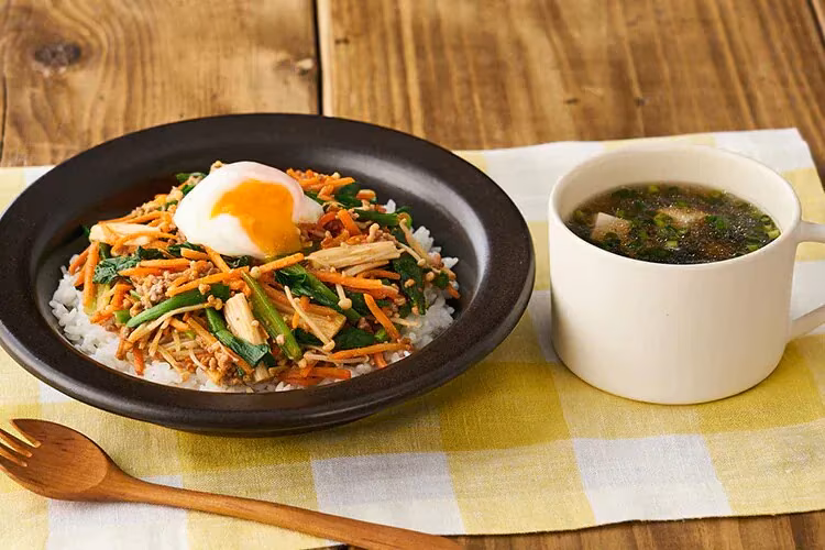 そぼろのビビンバは登場頻度の高い、人気のミールキットです。自分で切る必要のある食材もありますが、意外とてこずるニンジンの細切りなどは終わっているのも嬉しいところ。